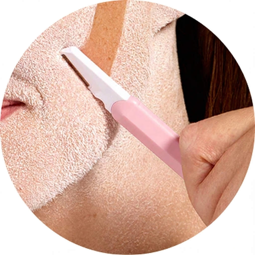 Our precision safety razors then gently sweep away peach fuzz and dull surface cells for a softer, brighter, more even-looking complexion, even on sensitive or acne-prone skin.